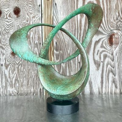 زیبایی بی انتها هنر کهنه شده را در آغوش بگیرید. این مجسمه کوچک نفیس از مس جامد ساخته شده و با پتینه ای خیره کننده و طبیعی به پایان رسیده است. این رنگ آبی-سبز متمایز، یادآور مجسمه های باستانی و جزئیات معماری فرسوده است، نه تنها یک پوشش، بلکه جشنی از روند پیری نجیب فلز است.