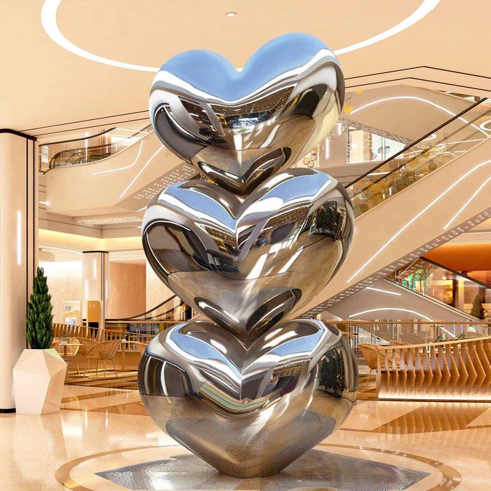 مجسمه قلبه اي از فولاد ضد زنگ که از فولاد ضد زنگ ساخته شدهاین مجسمه دارای شکل های قلب انباشته شده ای است که نماد عشق و ظرافت استاین مجسمه برای اضافه کردن یک لمس از پیچیدگی و جذابیت به فضاهای هتل مناسب است. پایان آینه یک سطح بازتاب دهنده ایجاد می کند که فضای لابی ها، سالن های اقامت هتل را افزایش می دهد.و سایر مناطق مشترک، باعث می شود که نقطه ی تمرکز برای مهمانان و بازدیدکنندگان باشد.