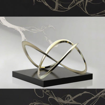 This gold-plated metal sculpture takes the infinity symbol as its core form—intertwined curved lines create a sense of endless flow, symbolizing continuity and elegance. The high-gloss finish reflects light dynamically, while the solid black base balances the sleek, lightweight structure. It blends modern minimalism with luxurious texture, ideal for elevating commercial or residential spaces.