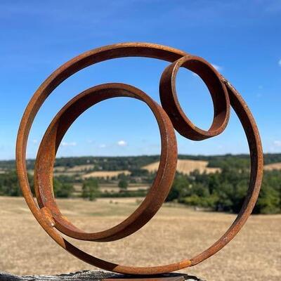 مجسمه هنری انتزاعی مدرن دایره ای بزرگ از جنس کورتن برای فضای باز باغ